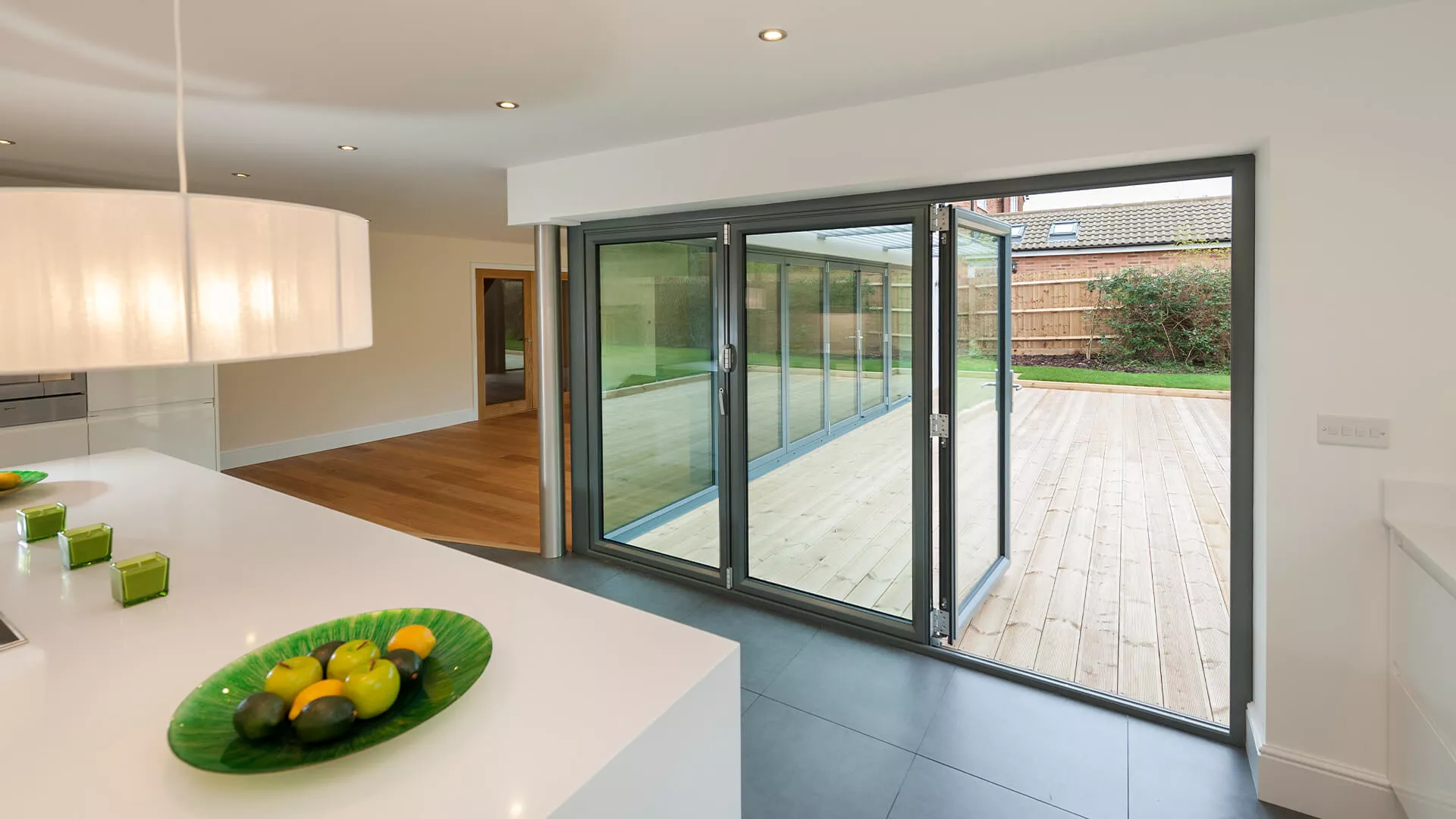 No home is ever the same, so we know that your aluminium bi-folding door will need to be specially configured to fit in. Many of our bi-folding door installations involve the product being integrated into the space between home and extensions and homes and gardens, and we can provide up to a 7-panelled door.