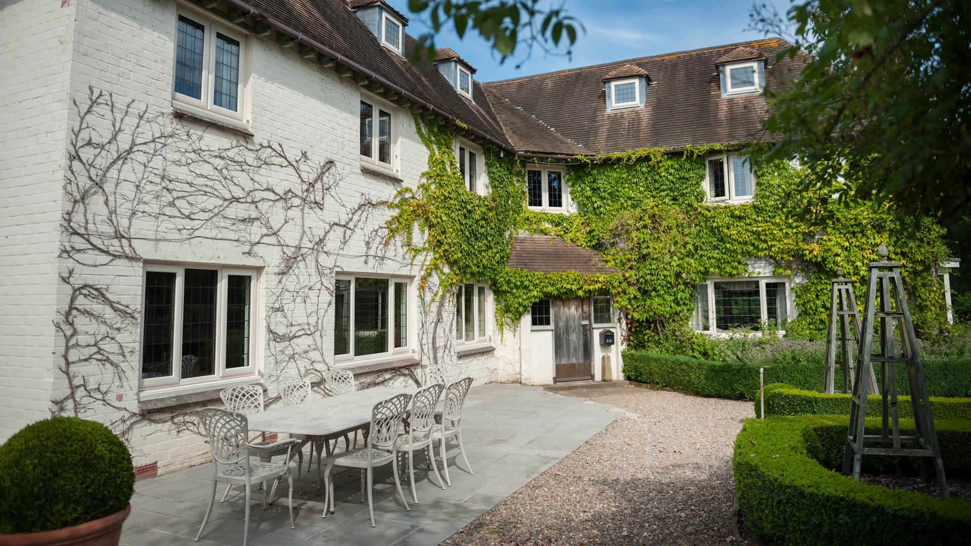 Attention should also be given to the inside of these new windows. They are affixed with period hardware, including some intricately designed handles, because it was important that the hardware was reflective of the era when the house was first built. Opening them is a constant joy, and the same sensation comes over you when opening the cream French doors. Integrated into a compact aperture, they offer access to the outdoor surrounds of the building and that amazingly complex maze-like front garden. It’s funny how the foliage growing on the exterior of the house somehow manages to make the replacement windows more prominent, not that they could possibly go unnoticed.