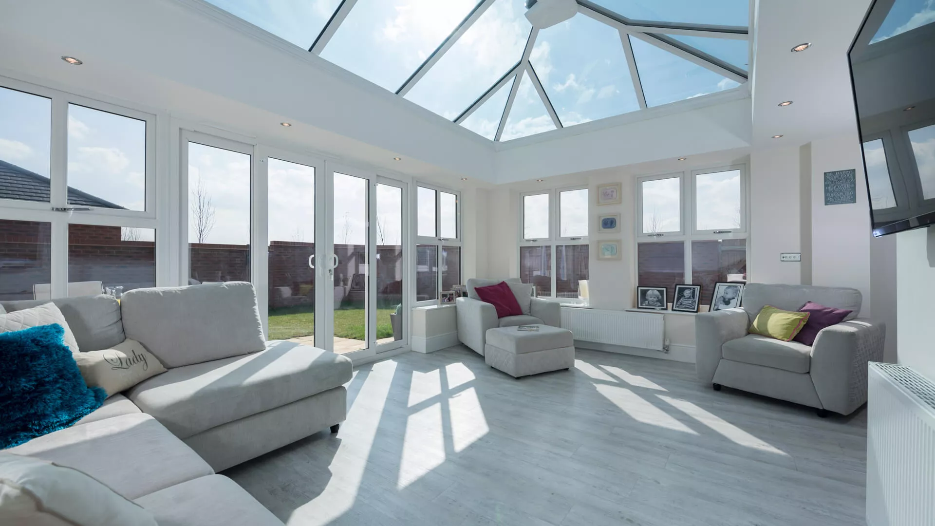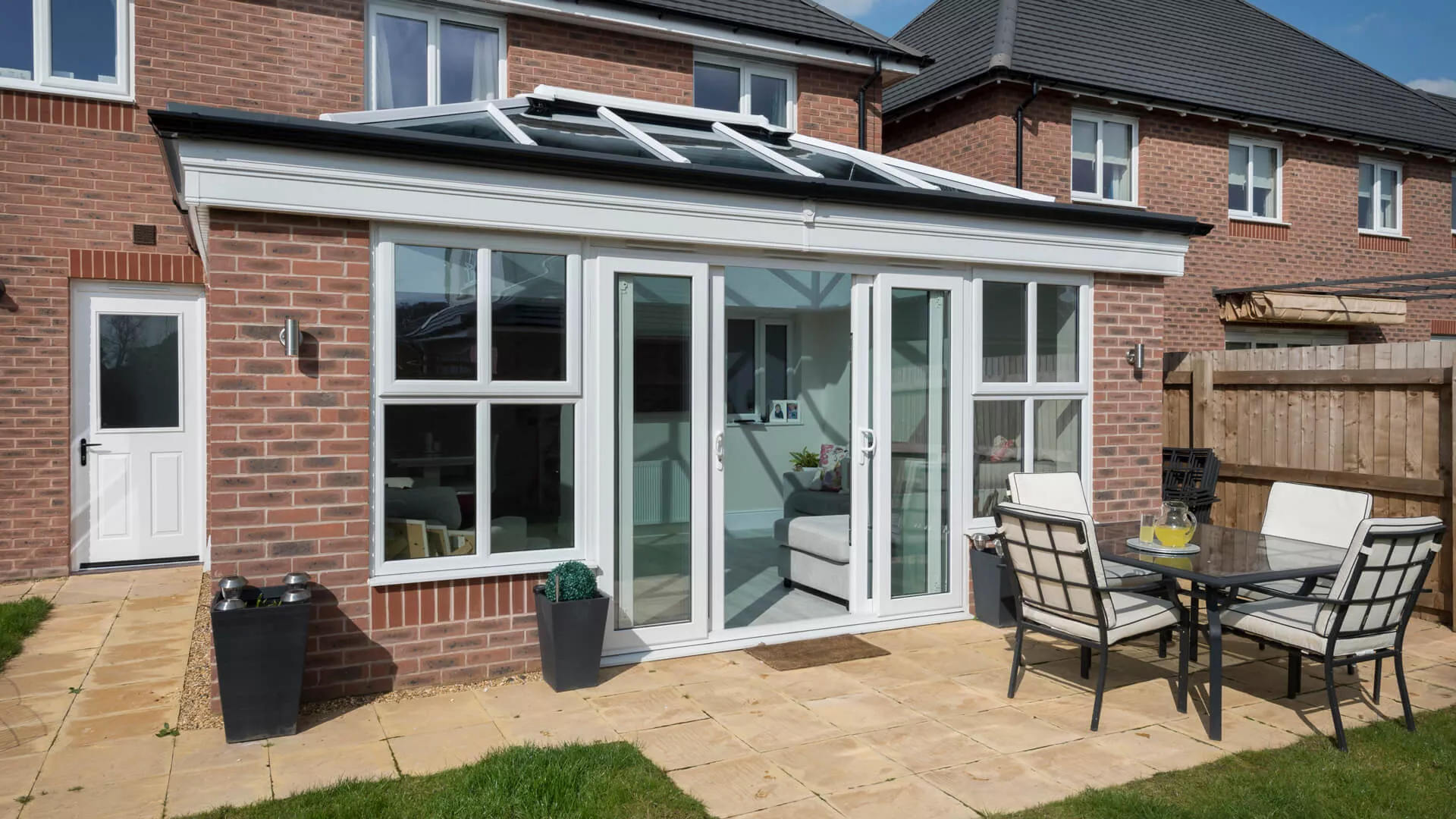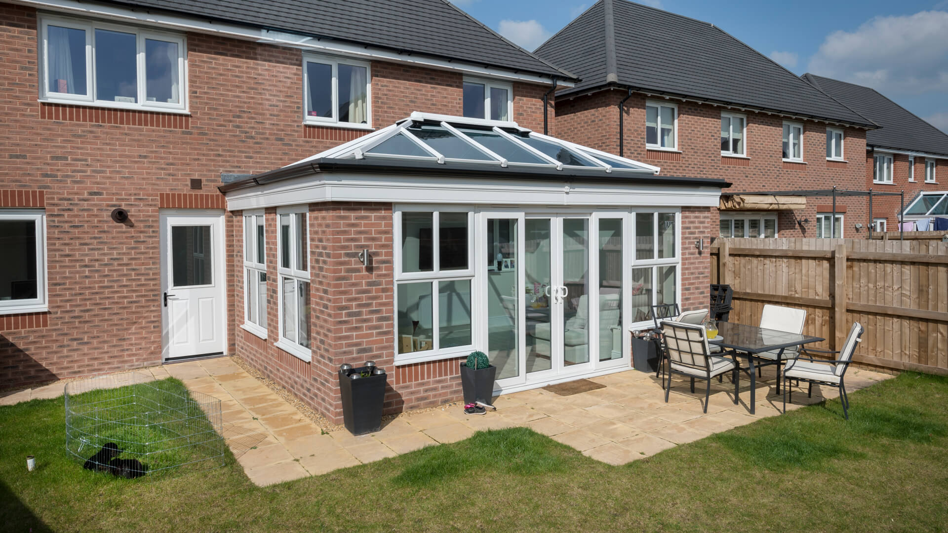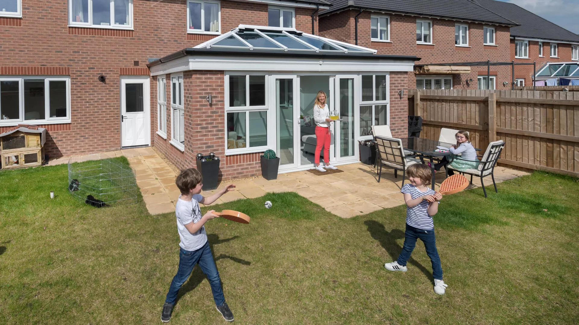 Patio doors were placed in the design to enable the kids to run out into the garden as and when they get the urge to. They have gorgeous side panels and offer a cute little opening towards the swingball set up outdoors, with everyone in the family very quickly getting into the swing of using them. Admiring the orangery on the outside is when you really start to appreciate just how much detail has gone into everything, and the view from the outside is no less impressive. It seems unfathomable how we have managed to get that roof up there, but we have, and boy, does it look the business.