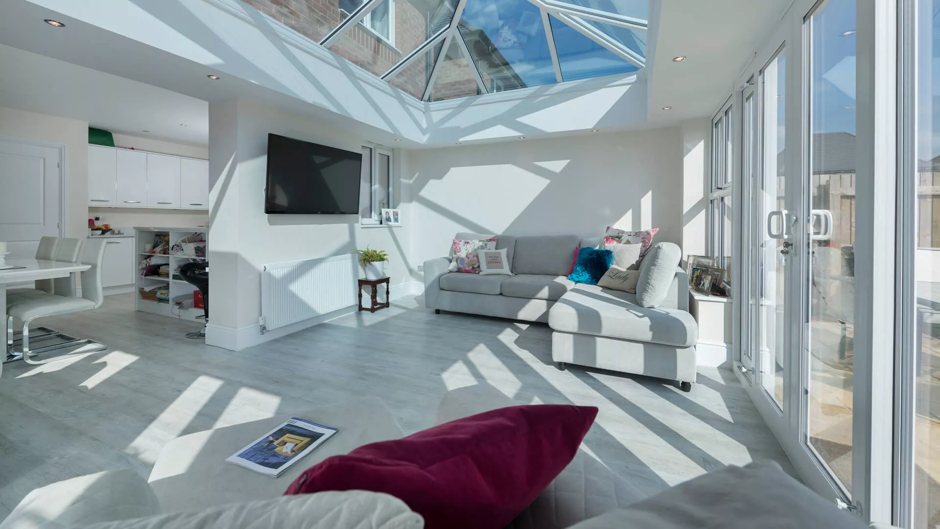 People often question the difference between a conservatory and an orangery, and the response is simple – glass. Conservatories traditionally feature more glass than orangeries, but there is a hefty volume of glazing in this orangery, and most of it is present in the significantly large glazed covering. The patio doors and windows also account for a high proportion of the glass in the orangery, and they equally help to brighten the interior so that everything from reading and gaming to playing with toys can go on.