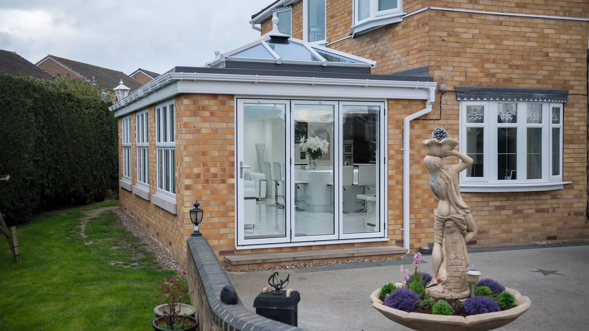 Here’s an orangery installation to take your breath away! The householder almost punched the air when we revealed it to them as it exceeded their wildest dreams. They were awe-struck by the Lantern roof and the beautifully configured bi-folding doors, and that was before they had even properly walked into the space. It has even earned the acclaim of the family dog. The use of LED lighting really emphasises the interior to outside eyes at night, and visitors to the house have been no less impressed.