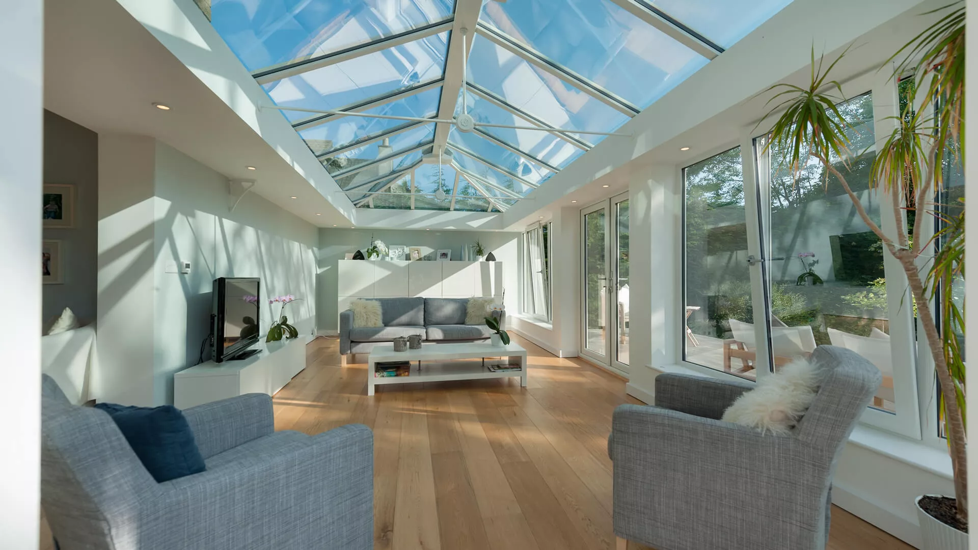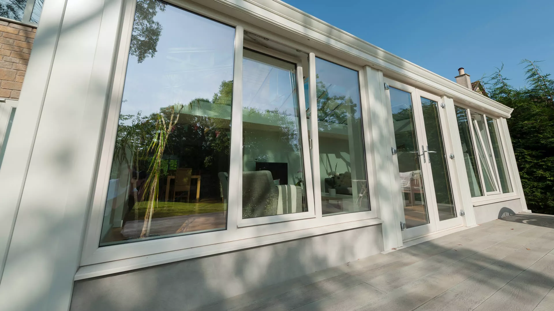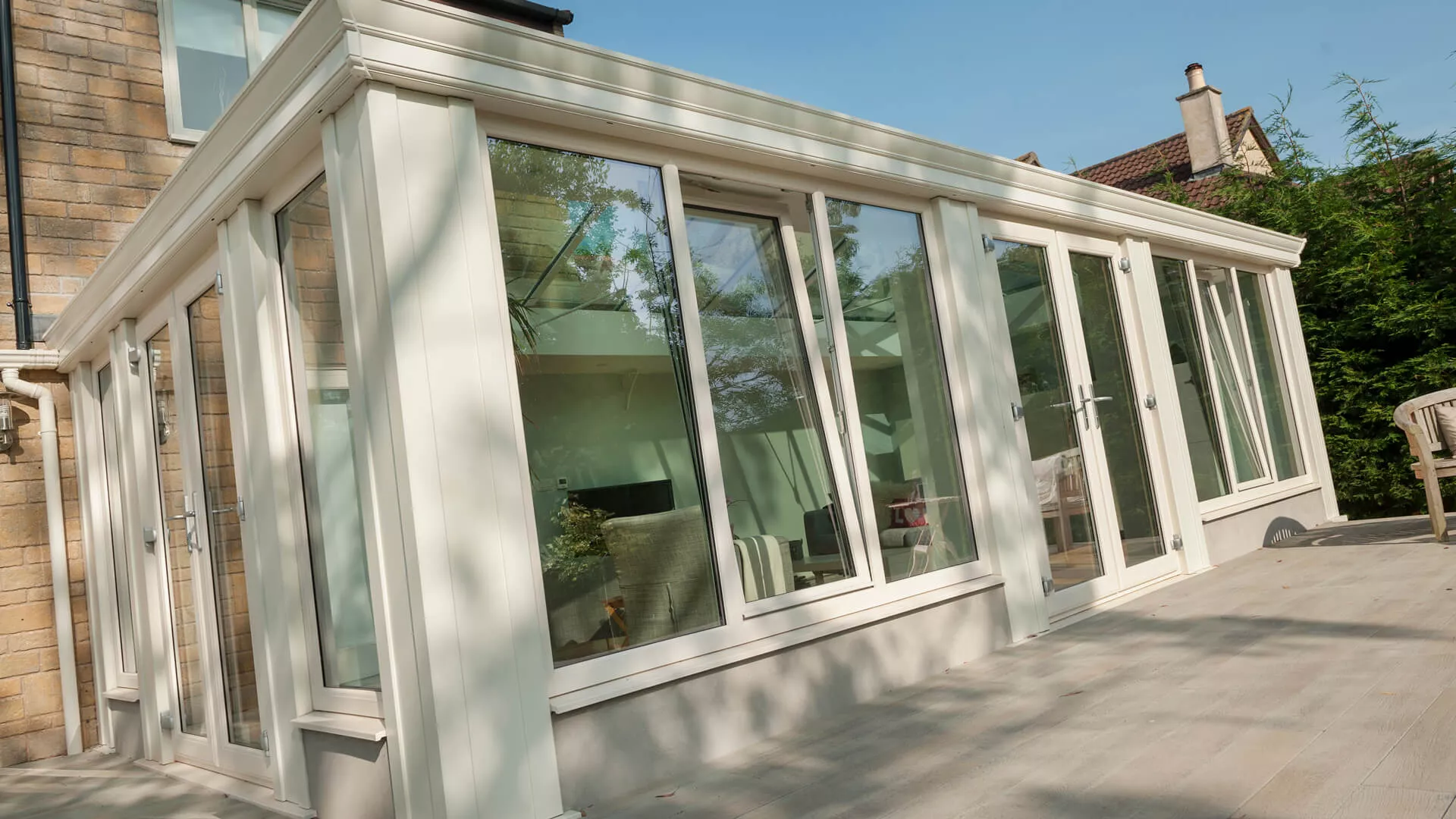 It’s a regular night time venue for the occupants, who use the spotlights housed in the perimeter ceiling to bring the interior to life when it goes dark outside. There also tilt & turn windows fitted at the front of the extension that can be used as a source of ventilation on any warm days, like the French doors. Affixed to these doors are purity handles that feel amazing in the hand when you pull them down to free the doors open. When they’re locked shut, there’s very little chance of an intruder getting into the building as contain up-to-the-minute locking mechanisms.